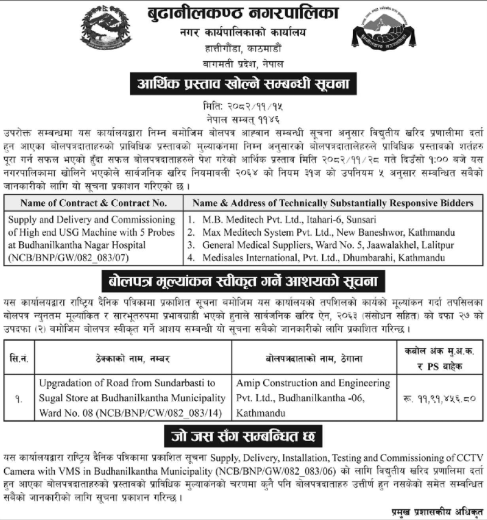 - Procurement of Medicine for Health Posts (2081/82), BMC |