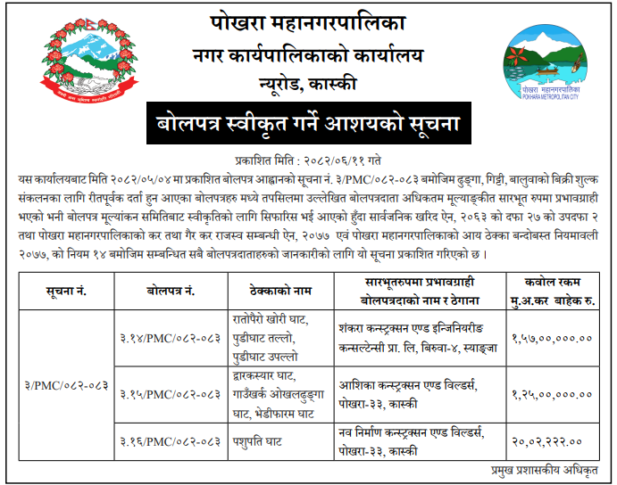 52 Bheemdatt Municipality Procurement of Royalty Collection from Mahakali River Bed Materials 26/09/2025 PPMO 12/10/2025 Click Here