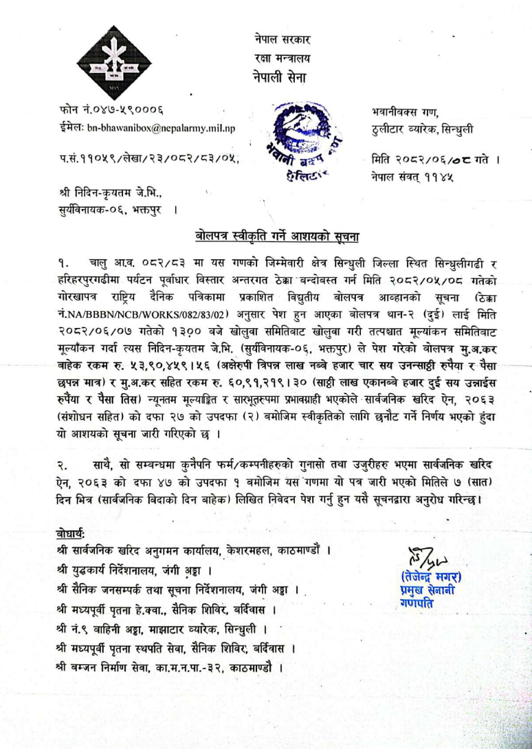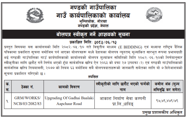 71 Benighat Rorang Rural Municipality, Dhading Charaudi Janagau Sadak 26/09/2025 PPMO 30/10/2025 Click Here