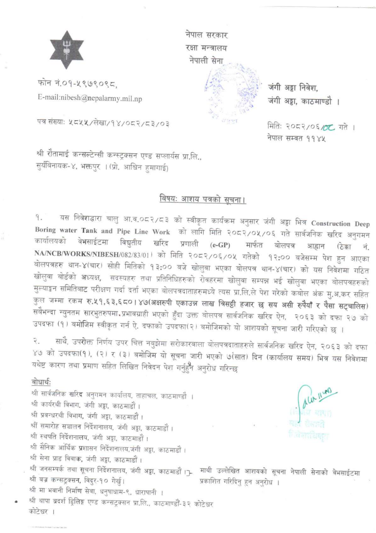 321 NEA, Itahari Distribution Center procurement of Printing and Stationery materials 26/09/2025 PPMO 12/10/2025 Click Here