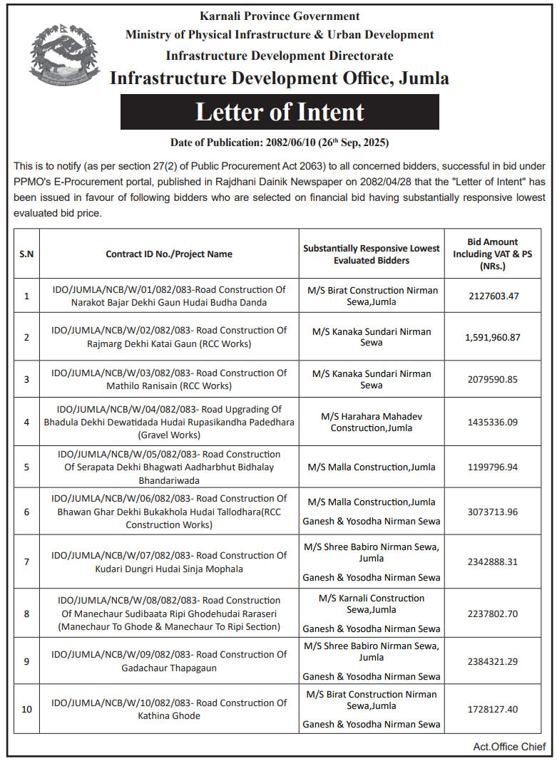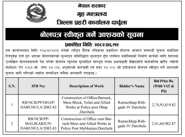 27 Malikarjun Rural Municipality, Darchula MRM/NCB/01-2082/083 26/09/2025 PPMO 28/10/2025 Click Here