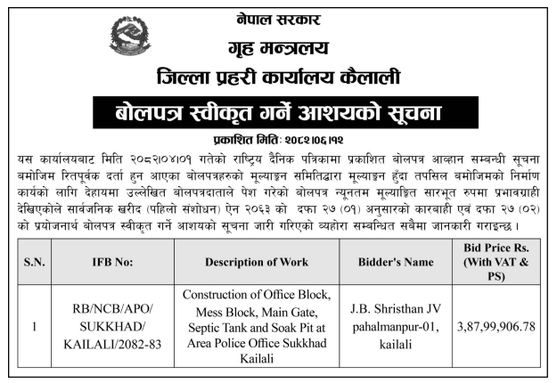 21 Bhumikasthan Municipality Construction of Administrative Building Works. 26/09/2025 PPMO 29/10/2025 Click Here