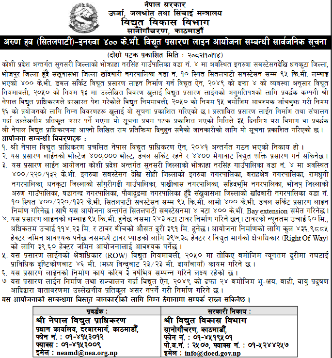 | 187 | Water Supply and Sanitation Division Office, Pyuthan | Electrification Works(Supply and Installation of HT/LT Line) in Hanspur 6-8 Lift WSP,Sarumarani R.M-03, Pyuthan | 27/01/2026 | PPMO | 26/02/2026 | Click Here | |