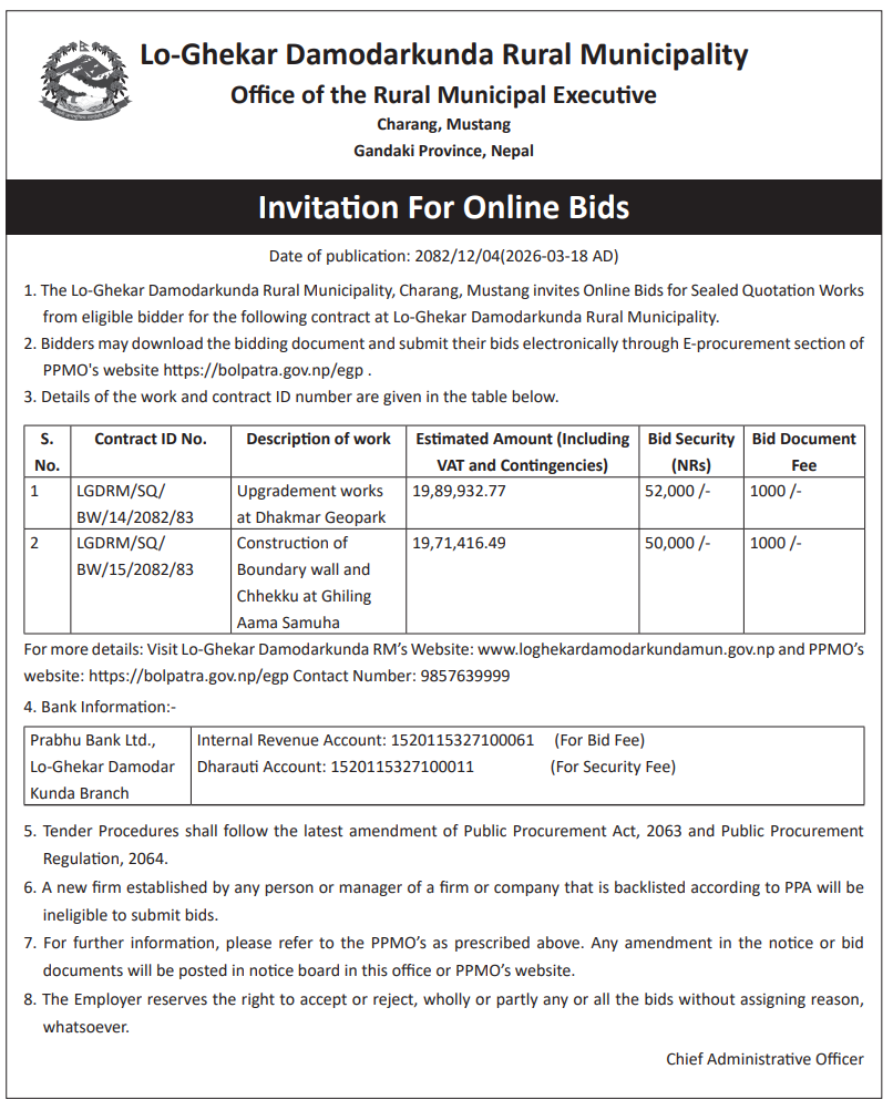 Comprehensive Database of All Tenders in Nepal, Bid published in Nepal, Contract Award and eGP Notice under EGP system. A digital organization set up to address the crucial needs of emerging businesses in our Nation. We value the key role of businesses in our Nation’s economic growth and prosperity. Our aim is to be the catalyst, propelling emerging businesses into new frontiers of growth and performance.