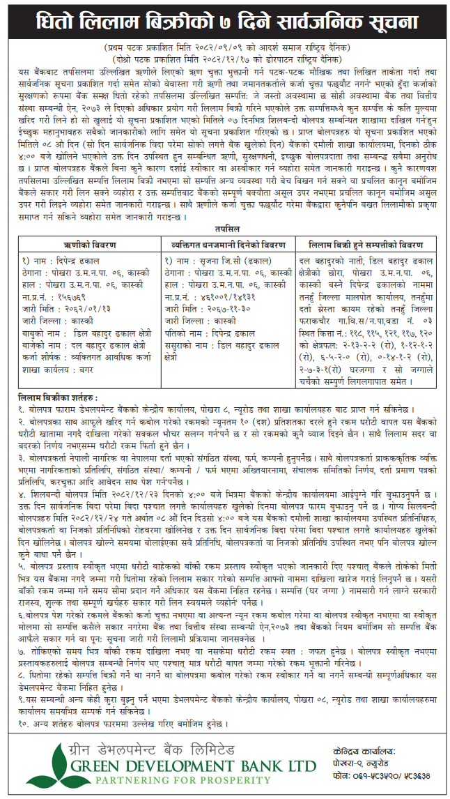 • Auction of Mortgage Property (लिलाम तथा बिक्री) |