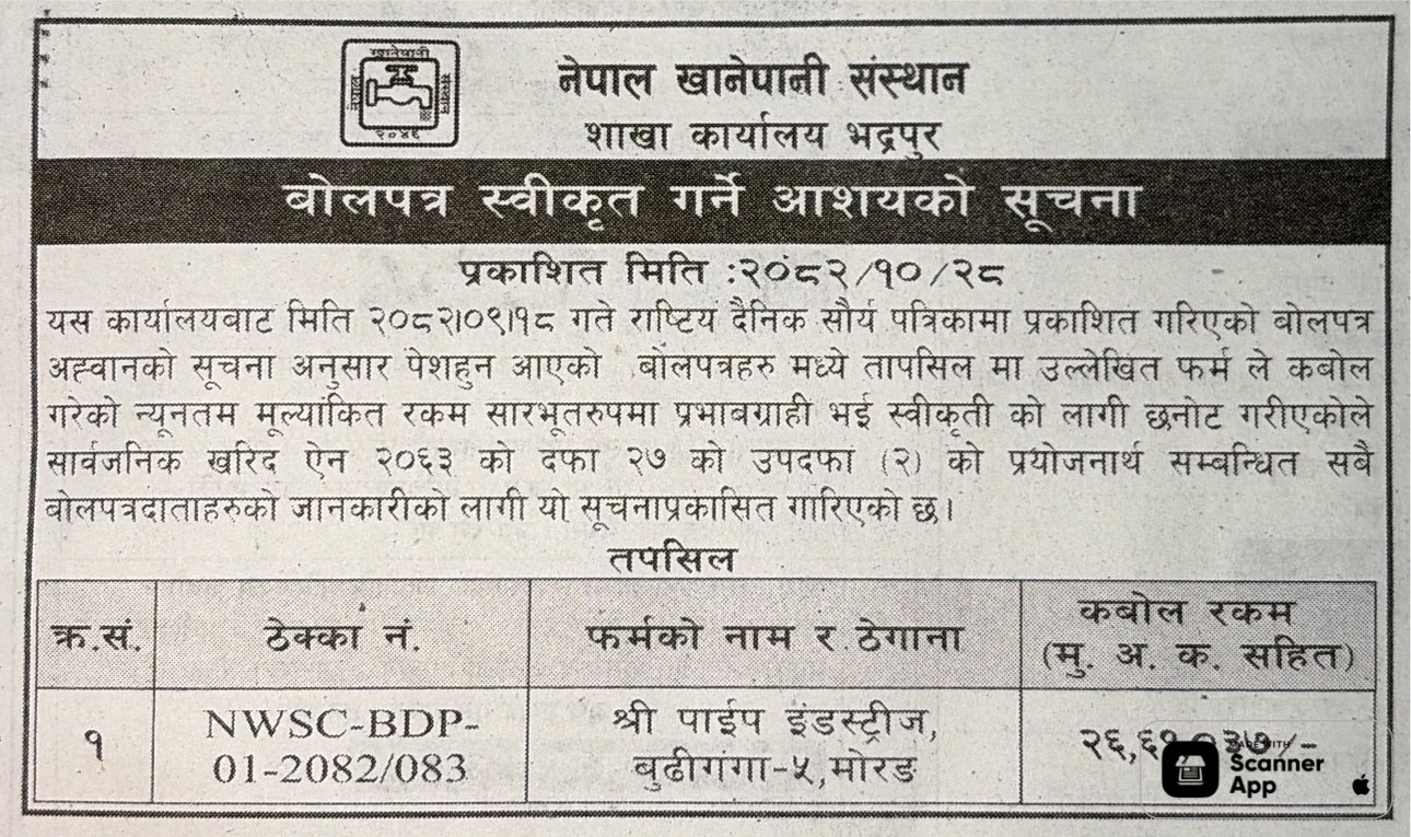 Comprehensive Database of All Tenders in Nepal, Bid published in Nepal, Contract Award and eGP Notice under EGP system. A digital organization set up to address the crucial needs of emerging businesses in our Nation. We value the key role of businesses in our Nation’s economic growth and prosperity. Our aim is to be the catalyst, propelling emerging businesses into new frontiers of growth and performance.