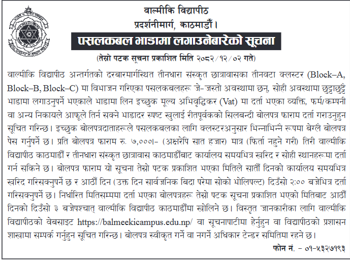 • Tender Notice