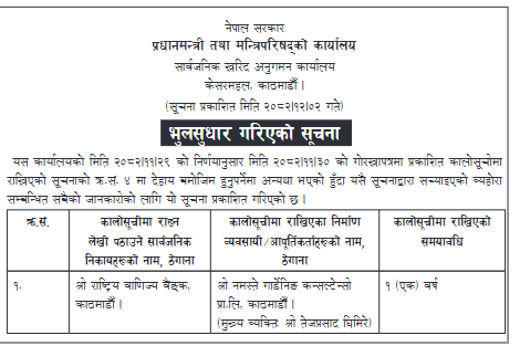 • Award Notice : Road Upgrading Work At Various Places (Swornikita Construction and Suppliers, Gatishil-Gravity JV) |