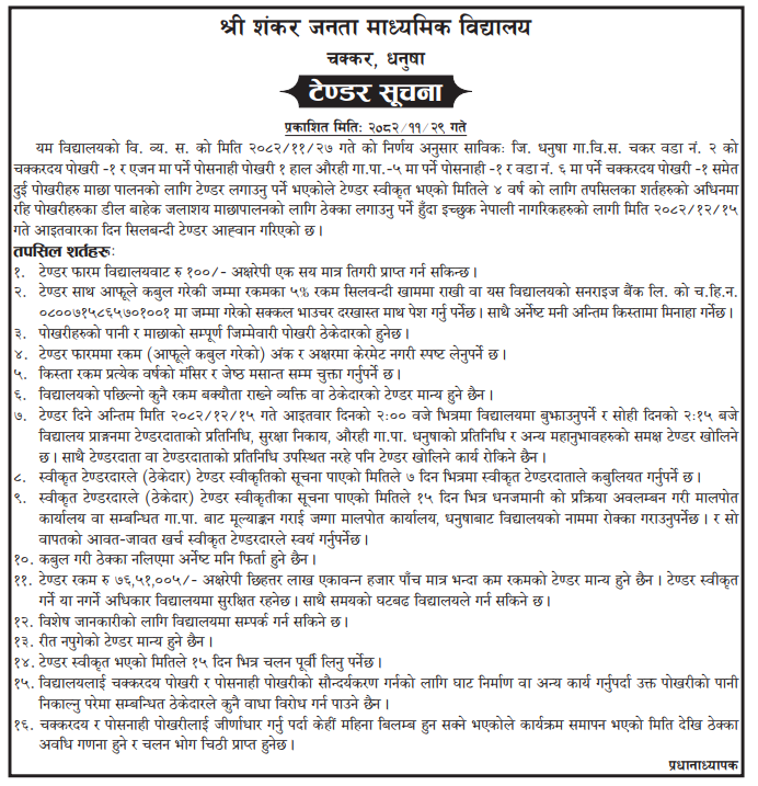 • Tender Notice Maintenance of Road, Construction of Bridge |