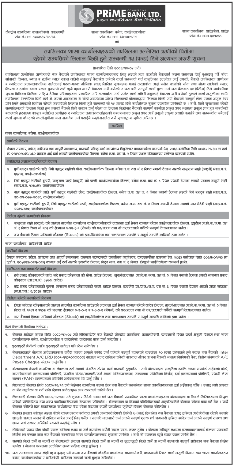 • Auction of Mortgage Property (लिलाम तथा बिक्री) |