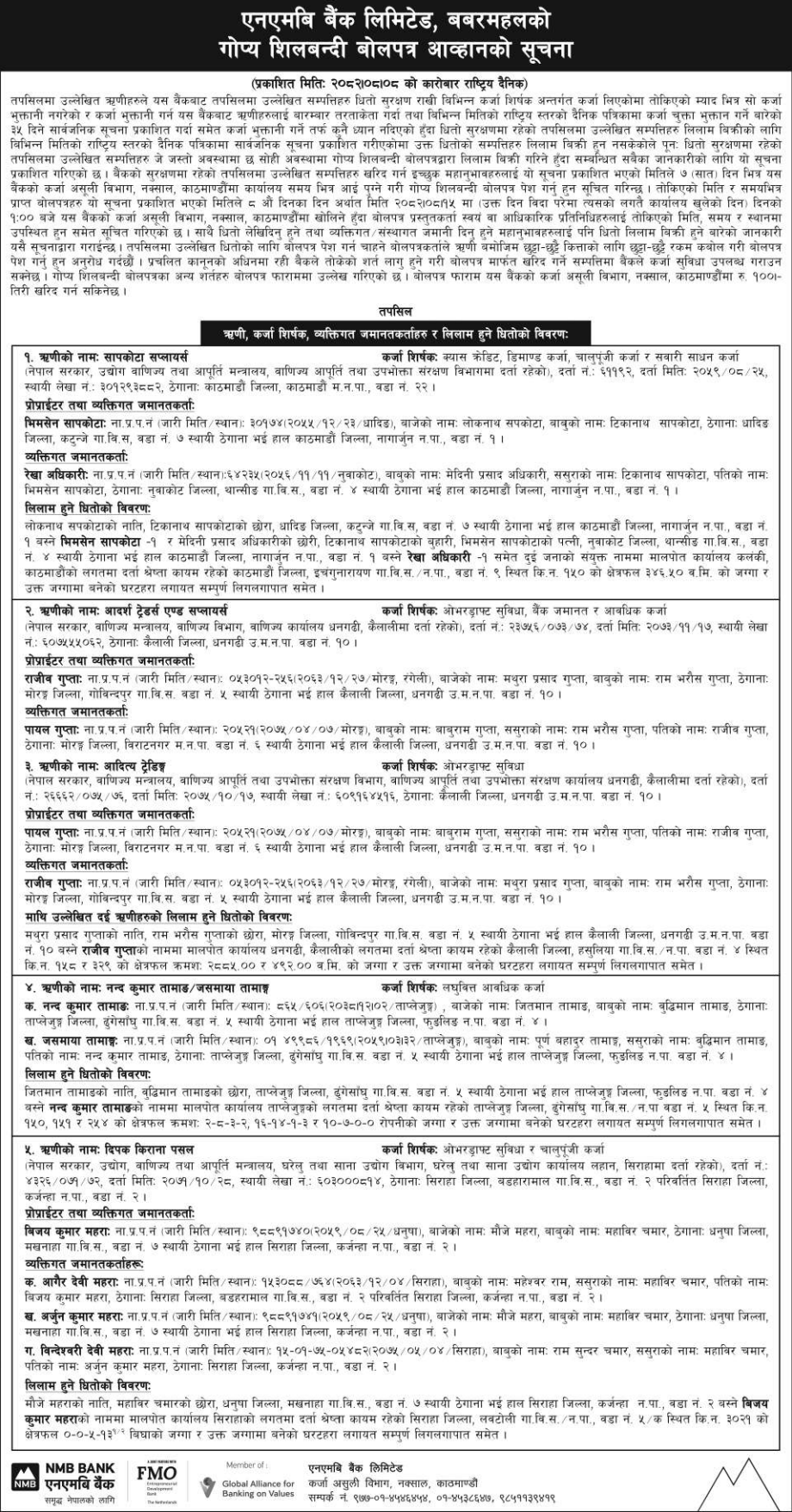 • Auction of Mortgage Property (लिलाम तथा बिक्री) |