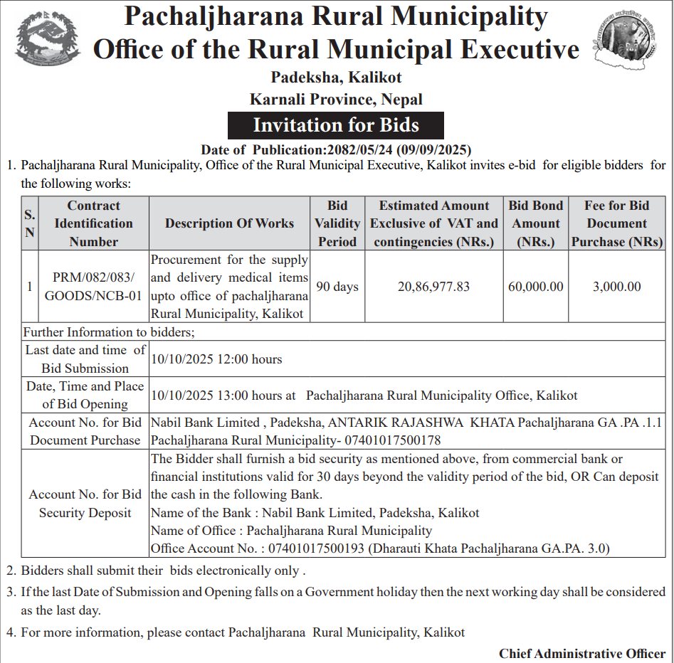 • Procurement of Medicine for Health Posts (2081/82), BMC |