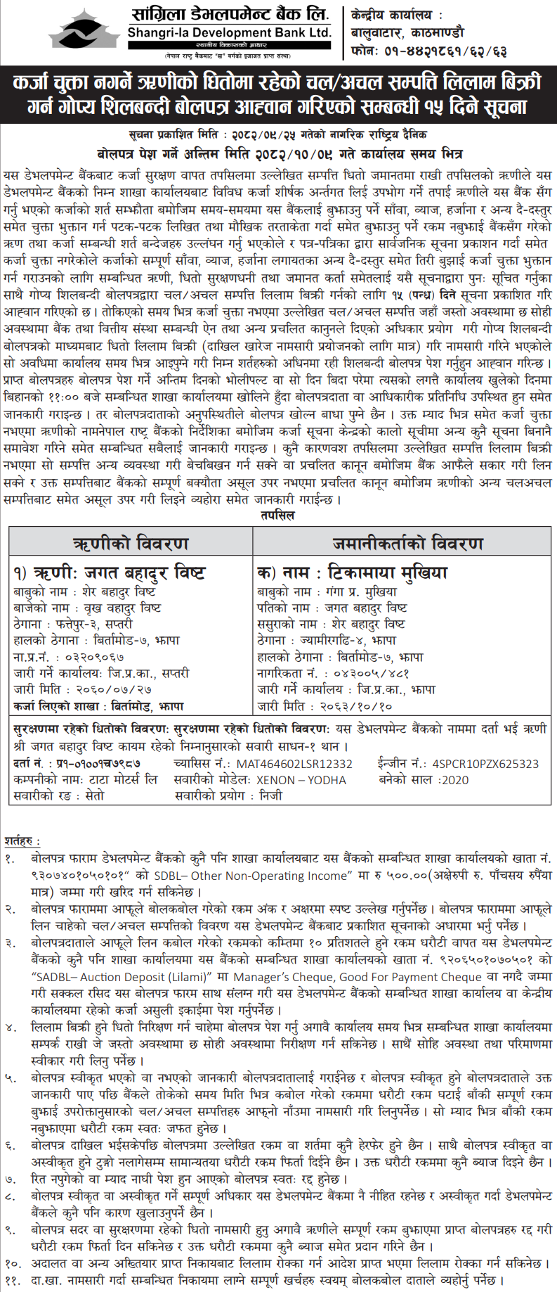 • Auction of Mortgage Property (लिलाम तथा बिक्री) |
