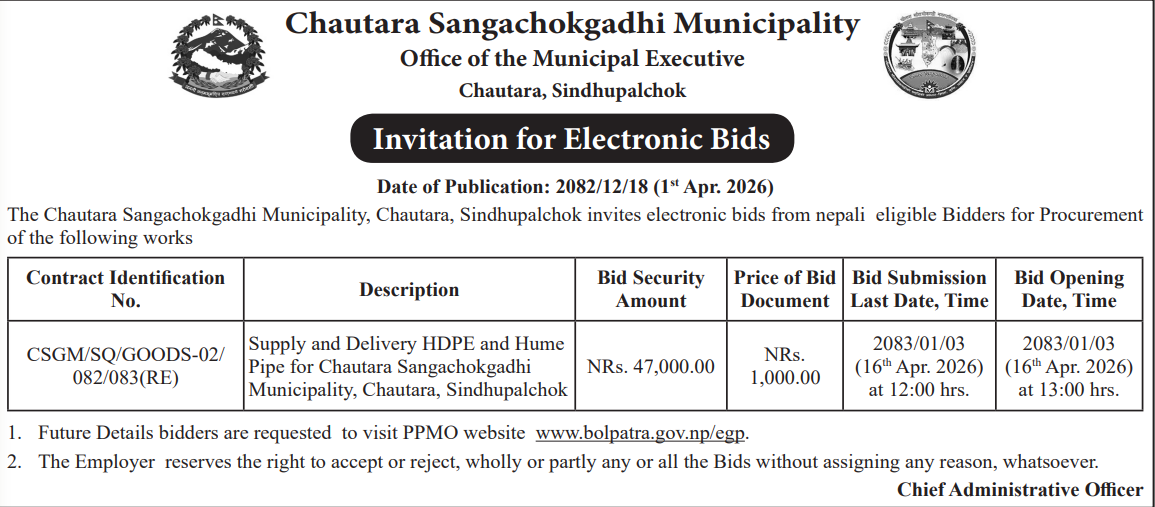 Comprehensive Database of All Tenders in Nepal, Bid published in Nepal, Contract Award and eGP Notice under EGP system. A digital organization set up to address the crucial needs of emerging businesses in our Nation. We value the key role of businesses in our Nation’s economic growth and prosperity. Our aim is to be the catalyst, propelling emerging businesses into new frontiers of growth and performance.