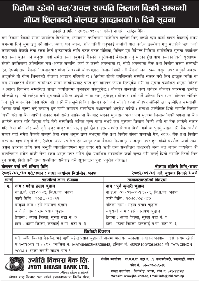 • Auction of Mortgage Property (लिलाम तथा बिक्री) |