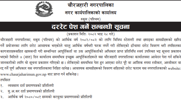 • Procurement of Medicine for Health Posts (2081/82), BMC |