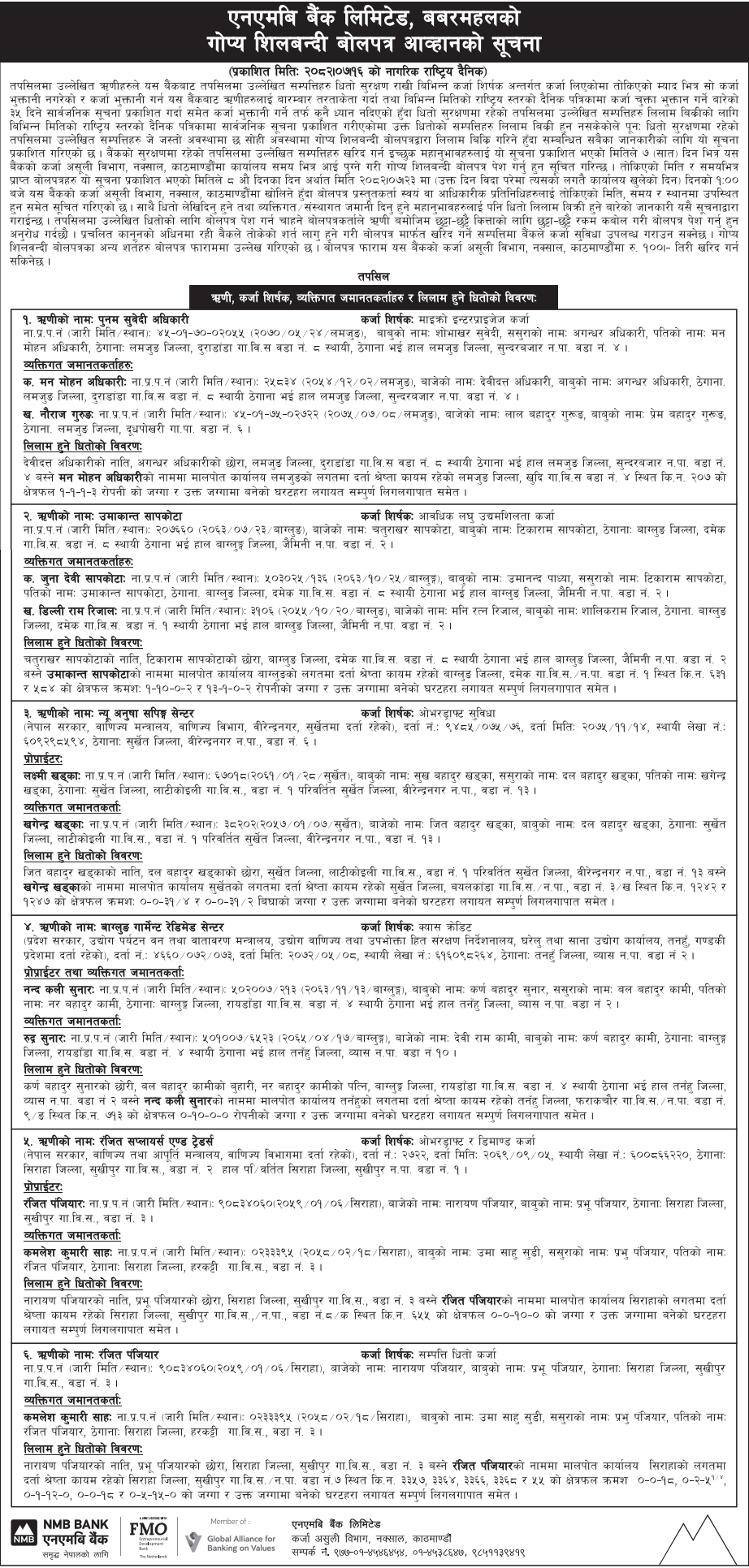 • Auction of Mortgage Property (लिलाम तथा बिक्री) |
