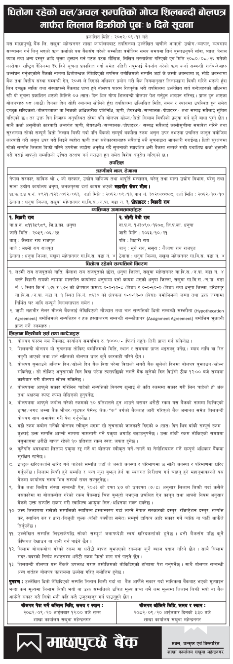 • Auction of Mortgage Property (लिलाम तथा बिक्री) |