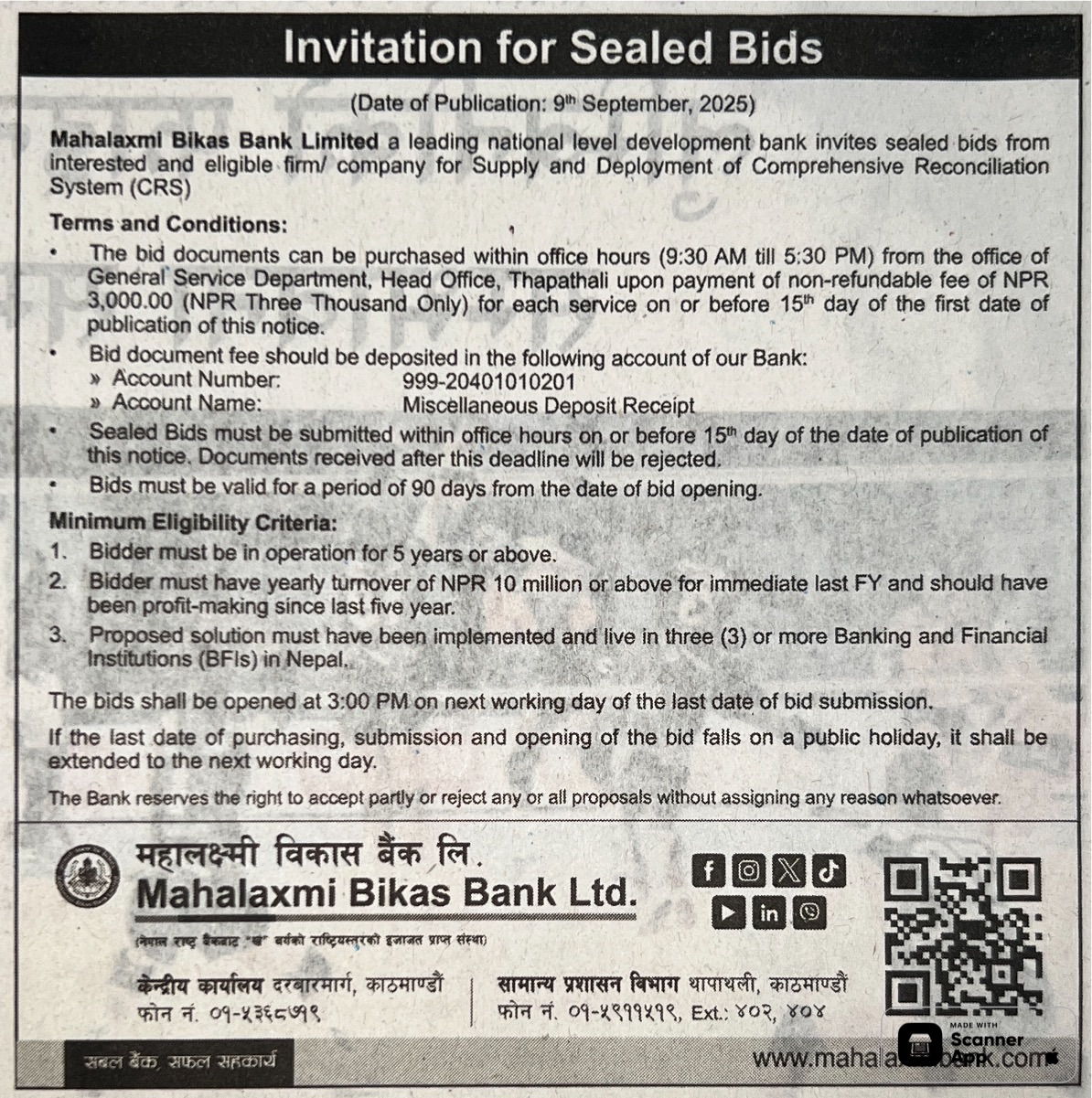 Comprehensive Database of All Tenders in Nepal, Bid published in Nepal, Contract Award and eGP Notice under EGP system. A digital organization set up to address the crucial needs of emerging businesses in our Nation. We value the key role of businesses in our Nation’s economic growth and prosperity. Our aim is to be the catalyst, propelling emerging businesses into new frontiers of growth and performance.