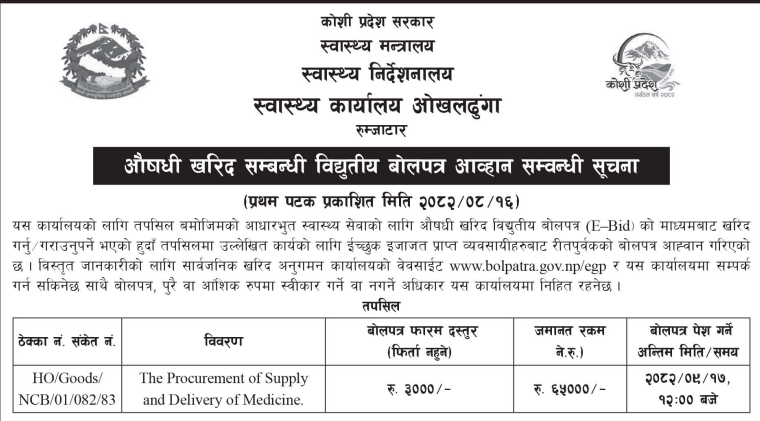 • Procurement of Medicine for Health Posts (2081/82), BMC |