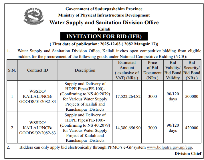 Comprehensive Database of All Tenders in Nepal, Bid published in Nepal, Contract Award and eGP Notice under EGP system. A digital organization set up to address the crucial needs of emerging businesses in our Nation. We value the key role of businesses in our Nation’s economic growth and prosperity. Our aim is to be the catalyst, propelling emerging businesses into new frontiers of growth and performance.