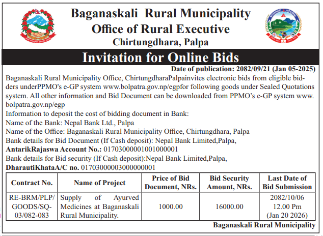 • Procurement of Medicine for Health Posts (2081/82), BMC |