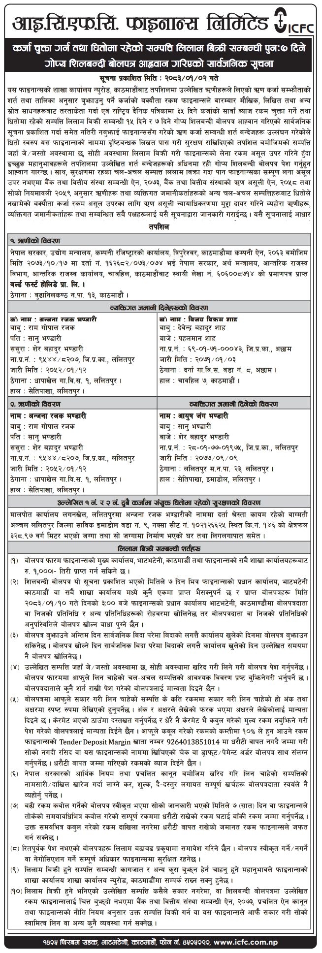 • Auction of Mortgage Property (लिलाम तथा बिक्री) |