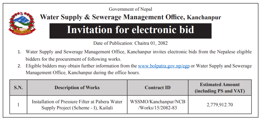 Comprehensive Database of All Tenders in Nepal, Bid published in Nepal, Contract Award and eGP Notice under EGP system. A digital organization set up to address the crucial needs of emerging businesses in our Nation. We value the key role of businesses in our Nation’s economic growth and prosperity. Our aim is to be the catalyst, propelling emerging businesses into new frontiers of growth and performance.