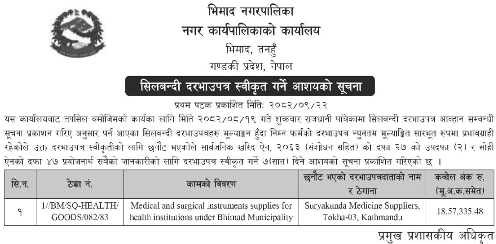 • Procurement of Medicine for Health Posts (2081/82), BMC |