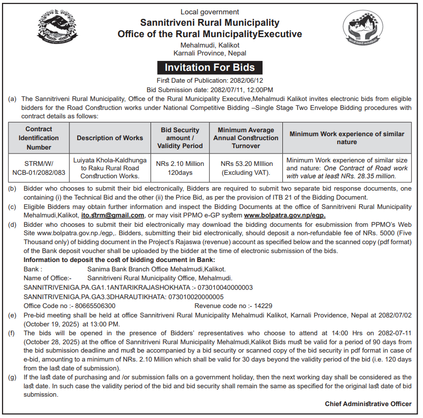 • Award Notice : Road Upgrading Work At Various Places (Swornikita Construction and Suppliers, Gatishil-Gravity JV) |