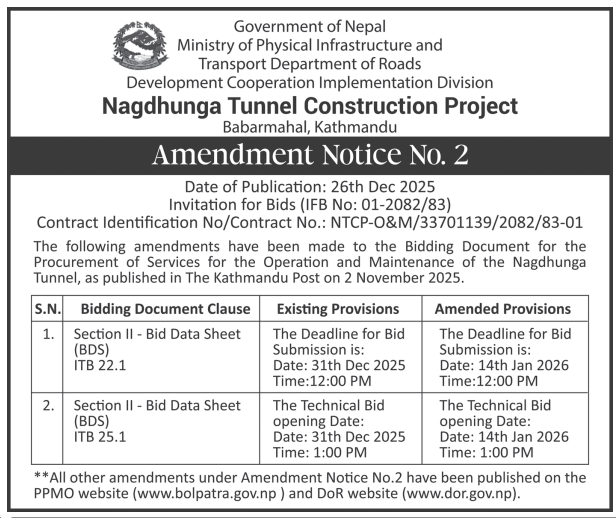 • Award Notice : Road Upgrading Work At Various Places (Swornikita Construction and Suppliers, Gatishil-Gravity JV) |